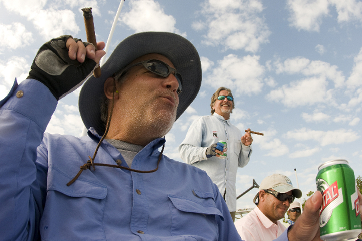 I’ve got to say the weather was even worse than the afternoon Pedro had lost them in the first place, the wind coming out of the southeast with gusts up to 30 mph, churning the water around us like a washing machine. And the channel stream was moving so quickly that when I accidentally dropped an empty Cristal beer can on the surface, the current floated it several yards away before I could even think of grabbing it.